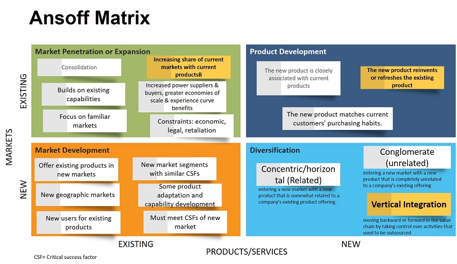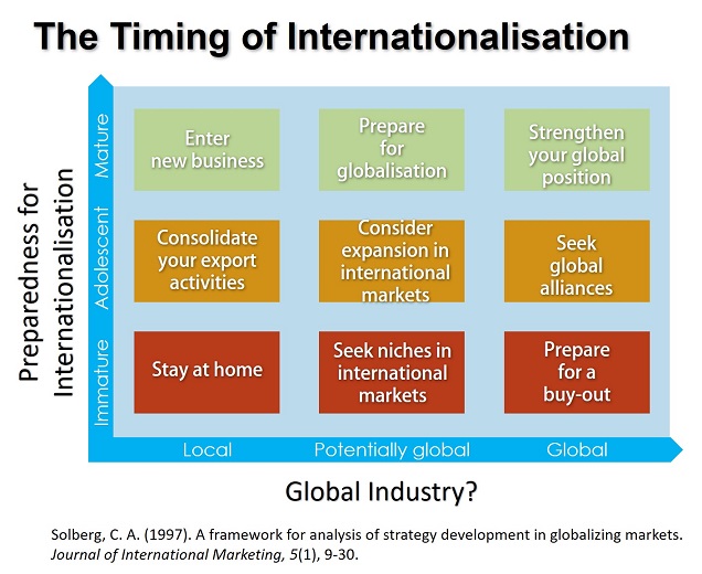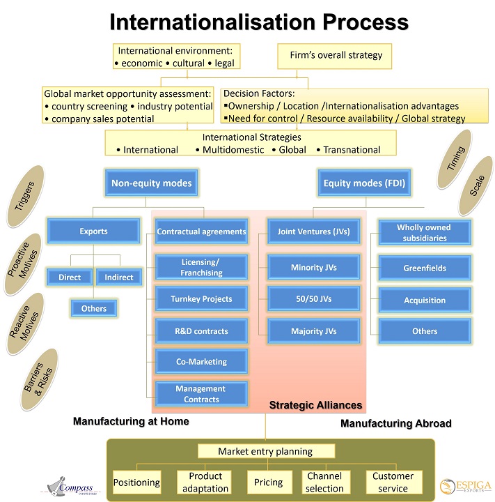 We could see the internationalisation process in the Market Development and Diversification grids of the Ansoff's Matrix