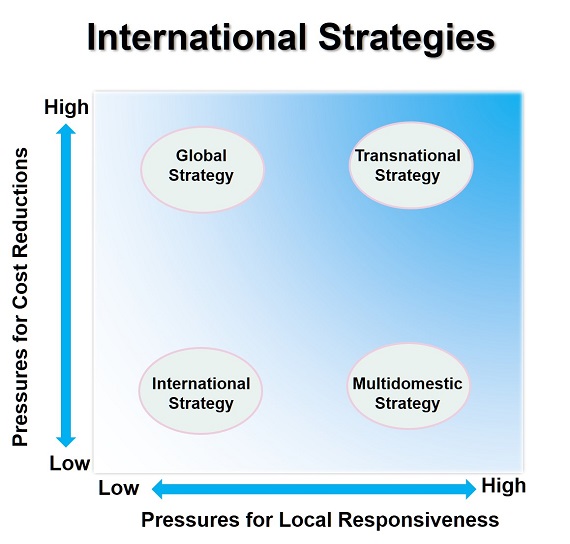 International Strategy: A strategy through which the firm sells its goods or services outside its domestic market