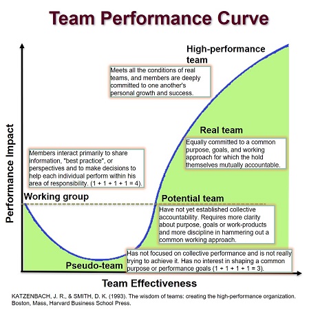 A great possibility for a potential team is when the team starts to gain understanding of what their mission and their reason for being is. As the Performance Curve illustrates, when a team approach makes sense, the performance impact can be high - the steepest performance gain comes between a potential team and a real team.